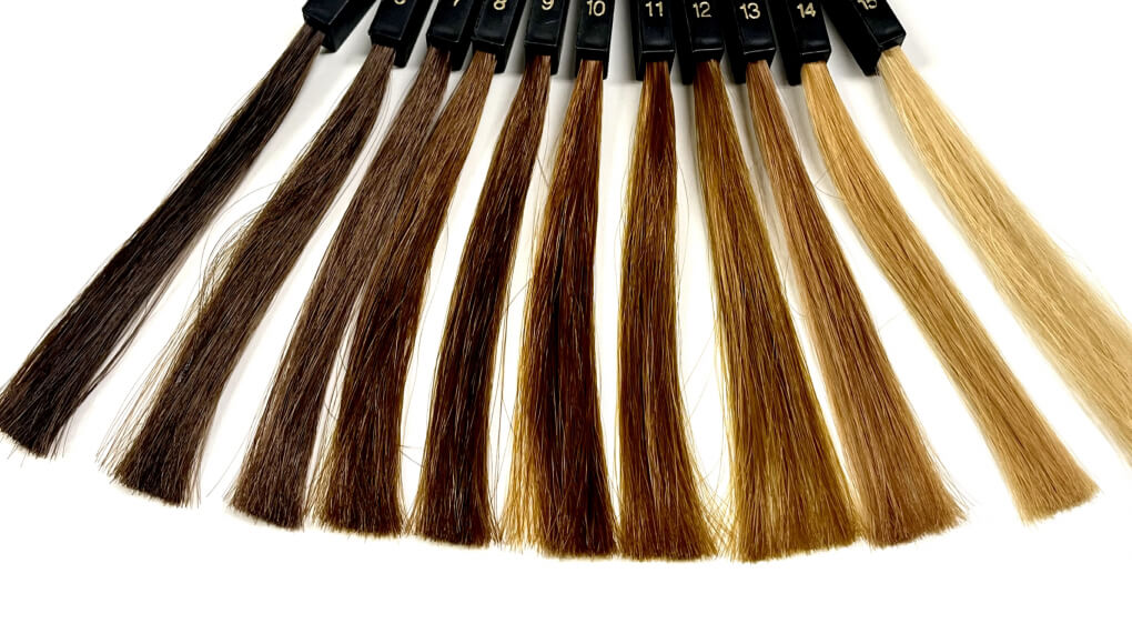 濃いめで地毛のように自然なダークブラウン(7~8トーン)から、ナチュラルながらも明るく柔らかい雰囲気のベージュブラウン(10~12トーン)まで様々。